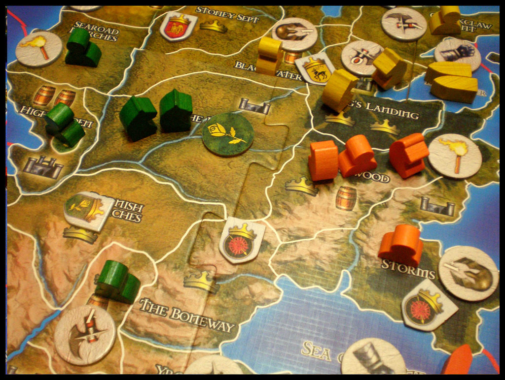 Each player represents a family in the warring continent of Westeros, and although alliances can be formed during play (and also broken) each player’s objective is to ultimately take control of a number of regions on the board.
