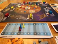In Alien Frontiers players take the role of different cultures trying to colonise an un-named planet in the centre of the gameboard. They colonise using dice (representing their spaceships) that land on different facilities orbiting the planet, which give them different actions. What action they choose depends on what dice they roll on their turn – but although there is a wide streak of chance in the game, it also has room for strategy too.