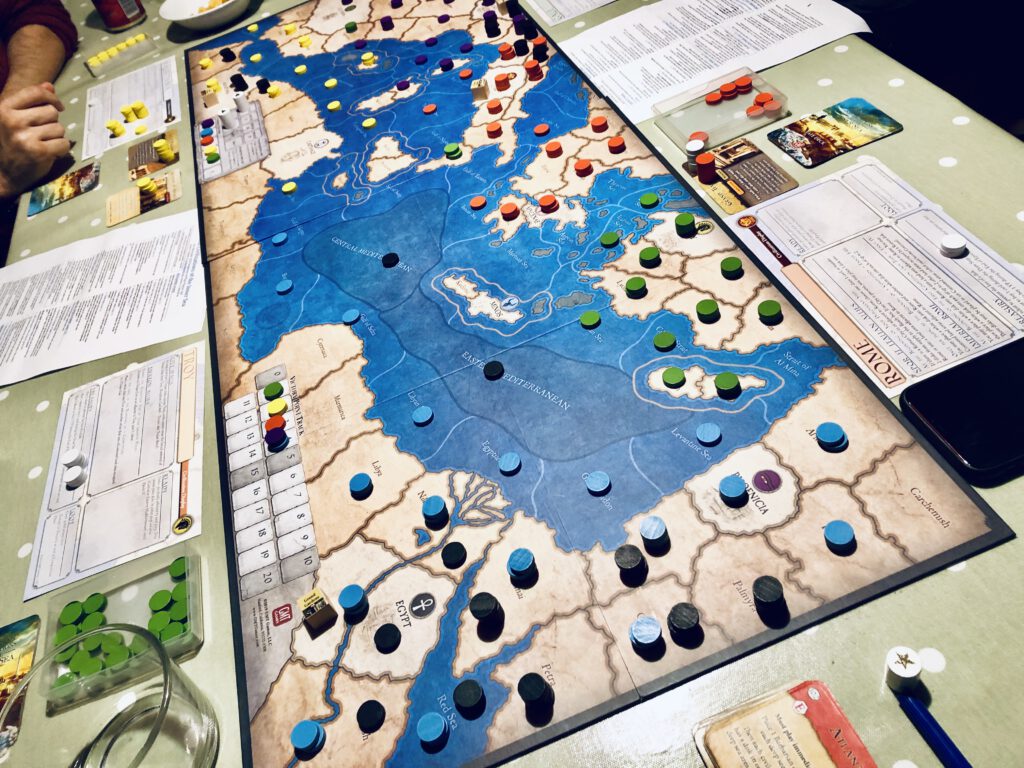 Ancient Civilisations of the Inner Sea pits the players at each other as competing cultures striving for dominance over the Mediterranean in the distant past. It’s part card game, part board game, and part destroyer of long-standing friendships…