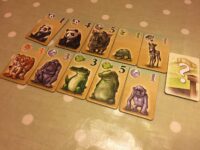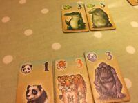 The element of I-cut/you-choose (occasionally used in our house to avoid cake-related arguments) reminds me of the games Mammut and New York Slice, where the spoils of the hunt (Mammut) or a pizza (New York Slice) are divided up by the players before being shared. But although it’s pitched at a younger audience, I think Animals on Board has the edge on both of those: it’s deliciously simple but has just enough hidden knowledge to keep everyone guessing until the final count-up. And I like the fact it can be played as a simple set-collection game, or as a vicious set-destruction game, where you focus on ripping apart the groups the other players are after.