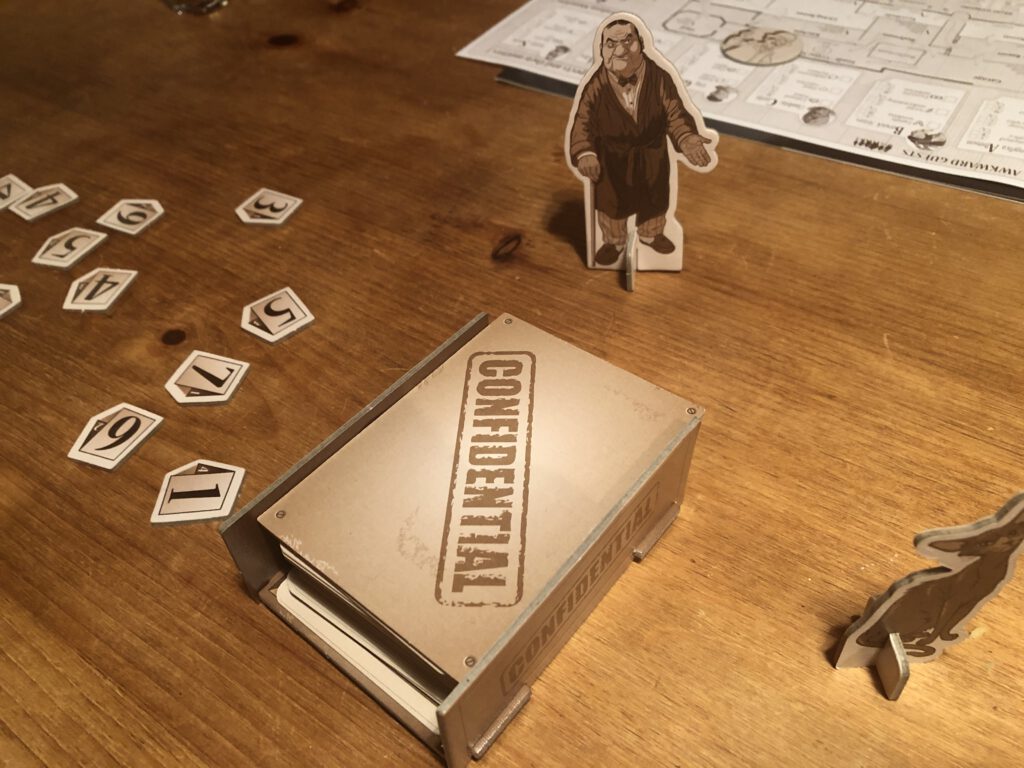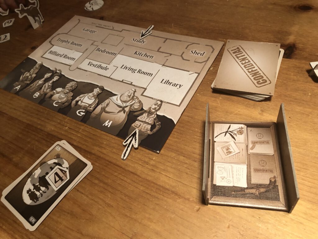 Awkward Guests is a deduction game where the players are trying to solve a murder in a country mansion.