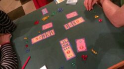 Everyone decides secretly which action they are going for and play the appropriate card face-down before simultaneously revealing them. If you’re the only player to choose a certain action, you get to do it. If one other player has chosen the same option, the pair of you haggle, making offers and counter-offers of gems until someone is happy to take them and let the other player pick up the new gems. If more than two players have chosen the same option, they all cancel each other out!