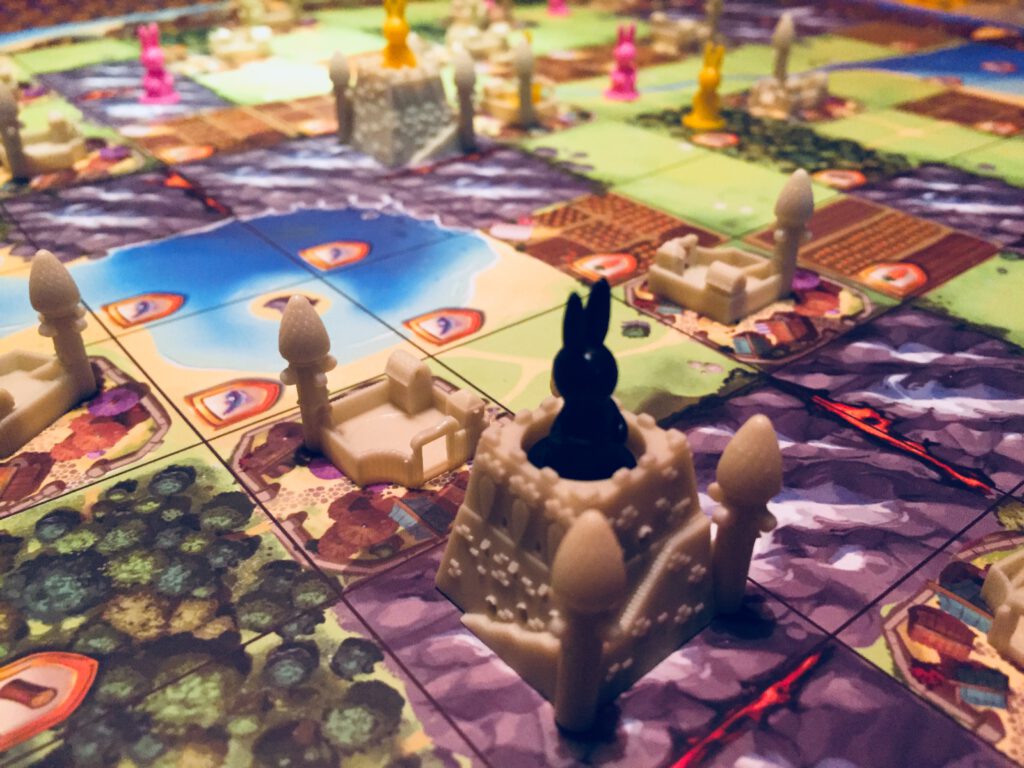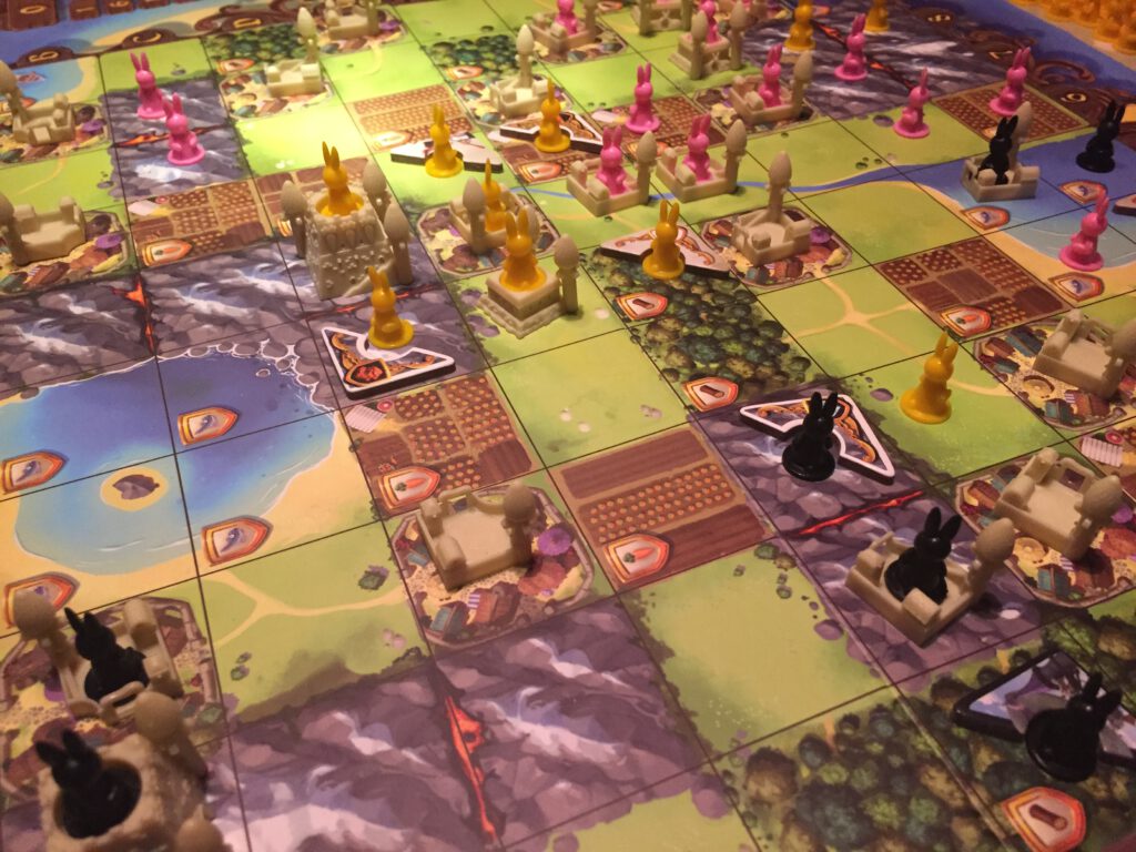 In Bunny Kingdom, players are competing colonies of rabbits – yes – trying to spread their fiefs over the land.