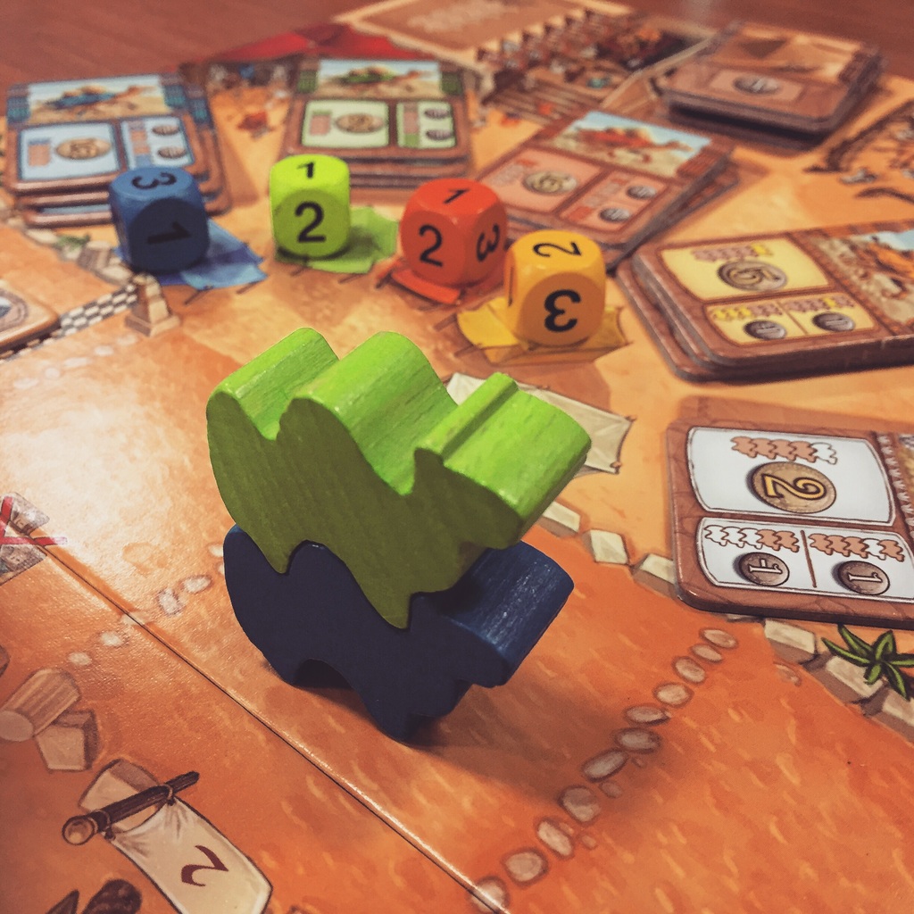 On your turn in Camel Up you can do one of four things: move a camel, back a camel to win a leg, back a camel to come either first or last at the end of the race proper, or add a desert tile to the racetrack: these are two sided and you can choose the mirage (which will slow camels down) or the oasis side (which speeds them up).