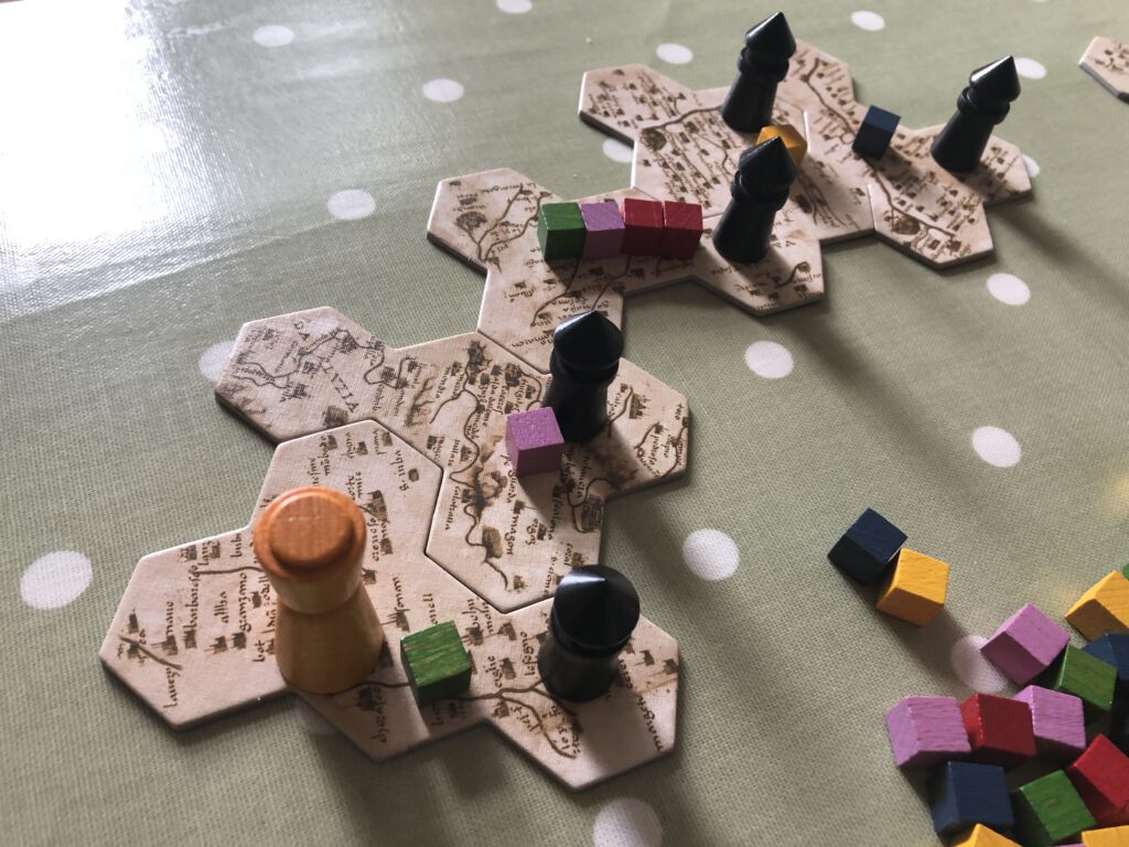 It’s not exactly an intuitive game to explain, because it is very abstract, but after a first play that complexity will drop significantly. Play tokens for turn order (remember your tokens also define how far you can move the emperor) then play three cubes to court or a territory, move the emperor, build a tower! That’s it. But the constantly shifting control of each colour makes it feel like you’re trying to wrangle a bunch of unruly mercenaries who will change their loyalties at the drop of a hat. Carolus Magnus may not have the immersive theme of a Memoir 44 or a skirmish game like Imperial Assault, and it has a far lighter set of rules. But make no mistake: this is a battlefield, and blood will be shed!