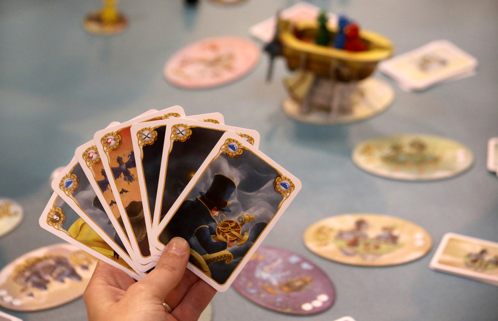 Celestia is a push-your-luck game inspired by Gulliver’s Travels (based on an older game called Cloud 9). The players board a flying ship (there’s a 3D assembly-ready one with the game) and set off: flying through the skies, landing at mystical cities. The key decisions are when to disembark the ship, as the sky is full of dangers and there’s no guarantees you’ll make it to the next destination…