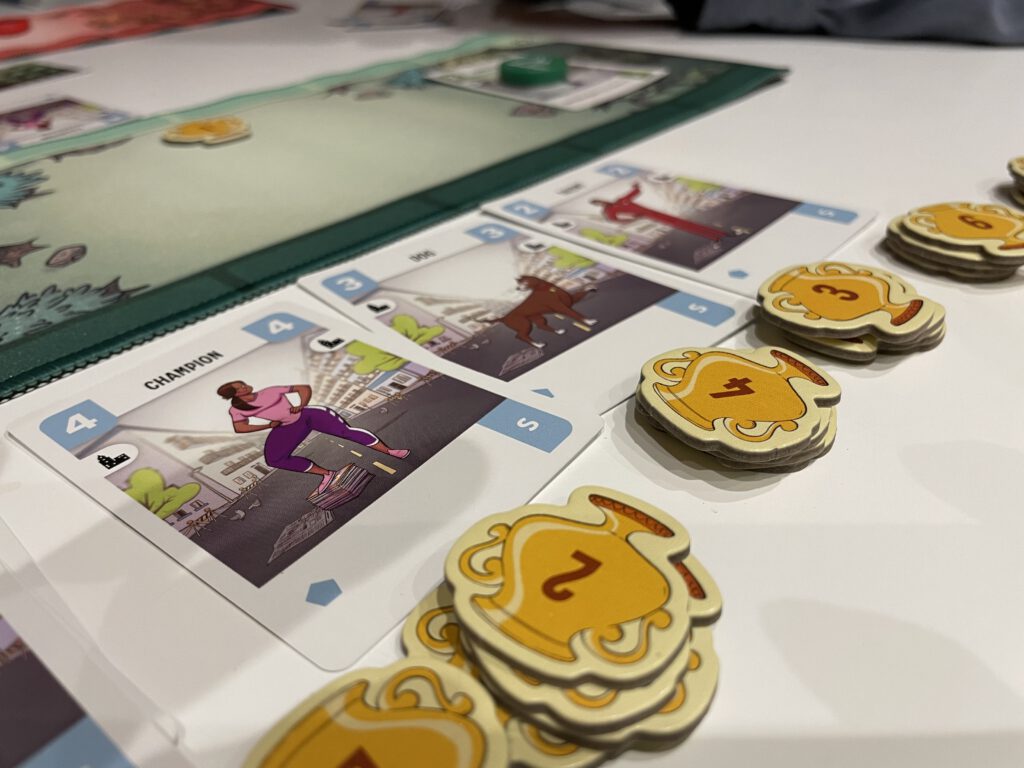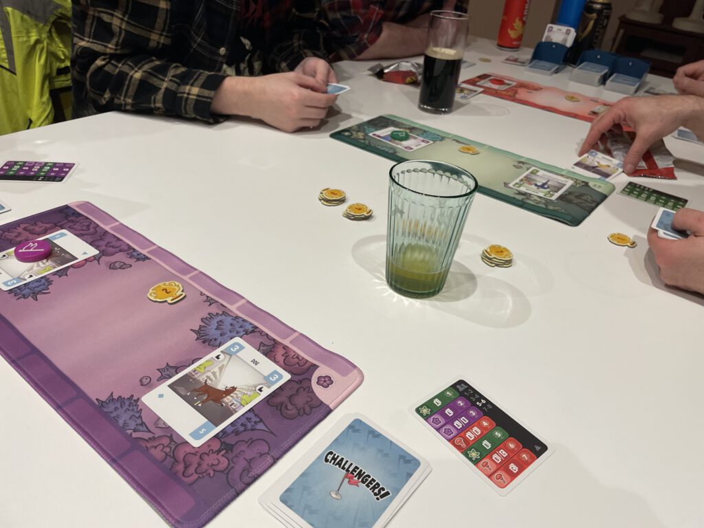 Challengers is a tabletop version of Capture the Flag, the classic kid-and-adult undertaking that’s usually played out in parks and streets. Here, the battle takes place via card battles on the table, and unlike the team-based inspiration, only one player can win. Challengers is played as a tournament of sorts: multiple small, short games of player v player until the most successful pair face off to determine who’ll be champion.