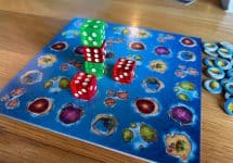 The game continues until all players have placed all their dice, at which point you add up the points value on your claimed cards – and the highest-scoring player wins, with leftover fish the tie-breaker if needed.