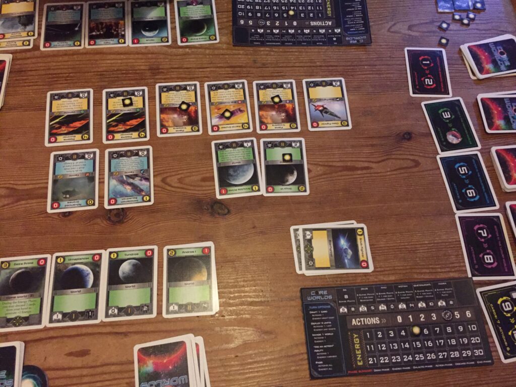 At the games’ finale the precious Core World cards become available, at which point you hope to be in a strong military position to take advantage. Every card in the deck has a point value (although many are zero) and after the tenth and final round, these are totalled to discover the winner.