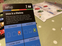 For example, I might want the downstairs all painted green and simply can’t countenance antiques in the kitchen. You might want at least one room in red and desire an antique curio, but not particularly care which room it’s in. The players aesthetic needs are carefully engineered so there is always a way to satisfy everyone, and it’s just about how many turns you take to find the solution.