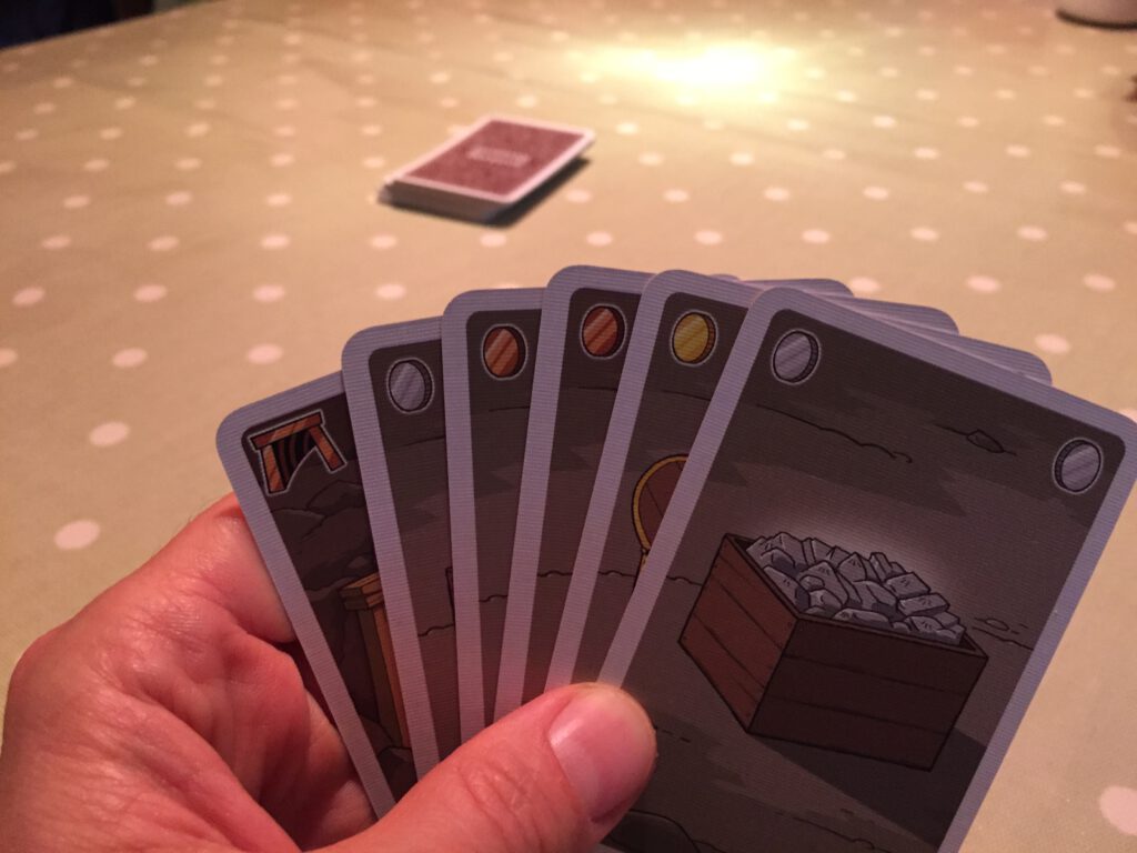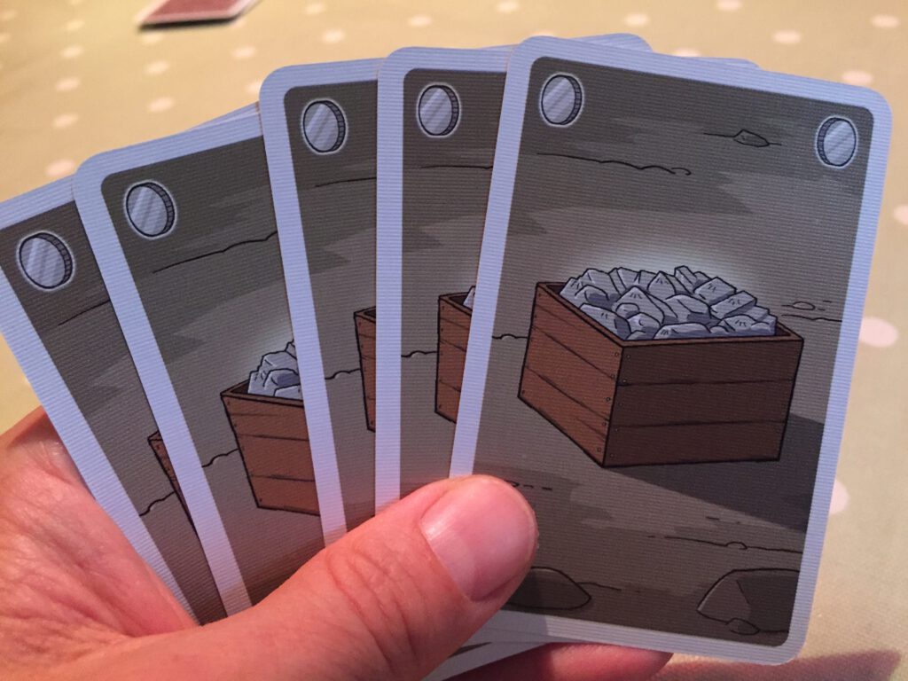 One other kink in the game is the double cards, showing not one but two pots of copper/silver/gold. Play these first into a mine and every metal card there will be worth double.