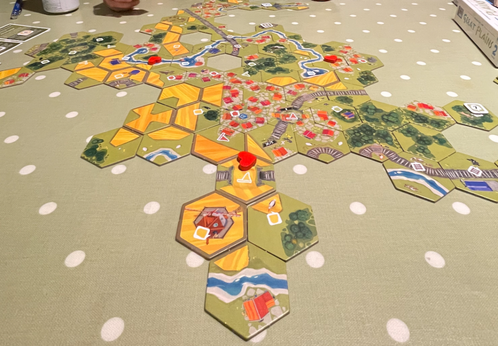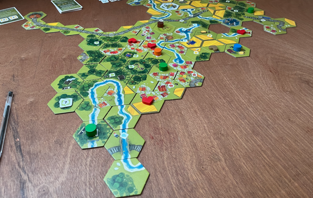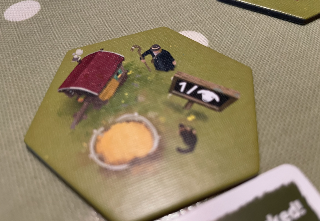 As well as the tasks there are also three flag tiles (village/forest/wheat) that will score for the matching area they are connected to, as long as that area is complete: an area is complete when there are no ‘exposed’ tile edges that could make it bigger.