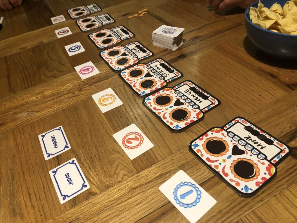 I couldn’t play Fiesta de los Muertos all night, but I do enjoy this type of game where the components in the box feel like a framework for player input; generating a silly paradigm-clashing experience that highlights how our brains often work differently but occasionally – triumphantly – come into synch. Some of the linked games on the right are my favourites and if Fiesta de los Muertos doesn’t quite oust them it very much deserves its place in the room. If I have a caveat it’s player-count: the more players there are the less words you see, so the end-game guessing can end up feeling a little arbitrary.
