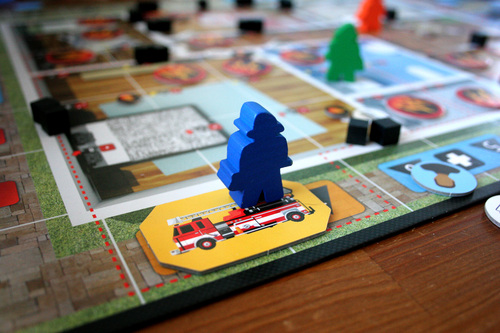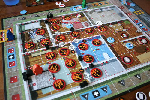 Flash Point: Fire Rescue is a co-operative game: players must work together to put out a fire, or at least save a number of potential victims before the structure collapses around them.