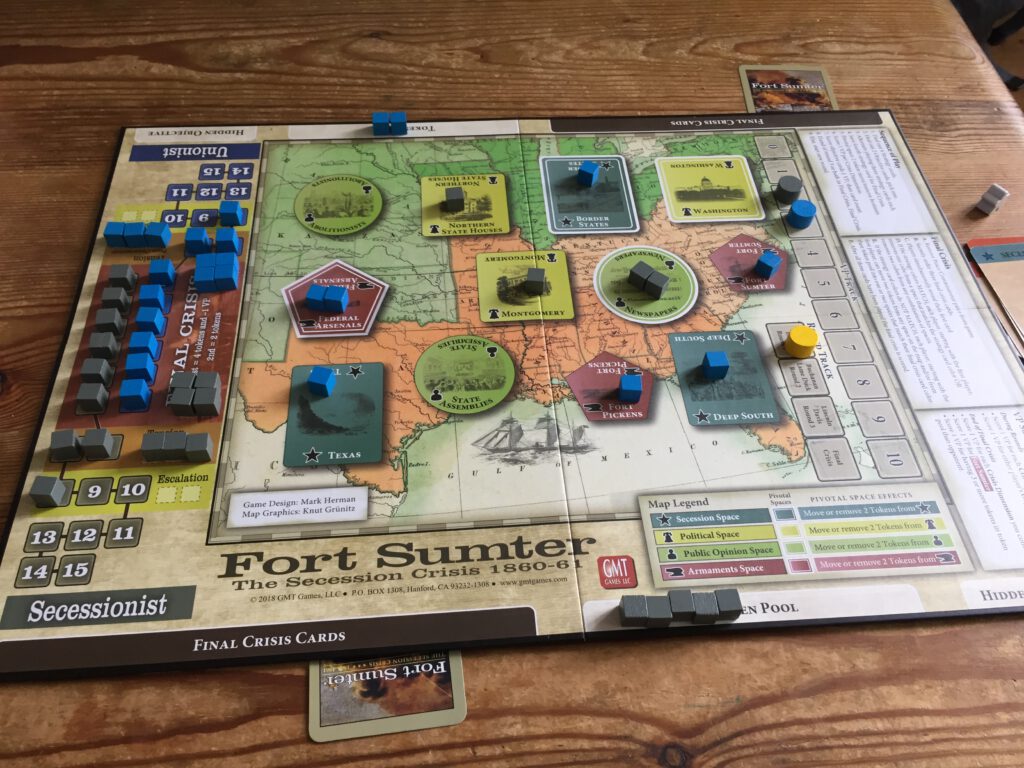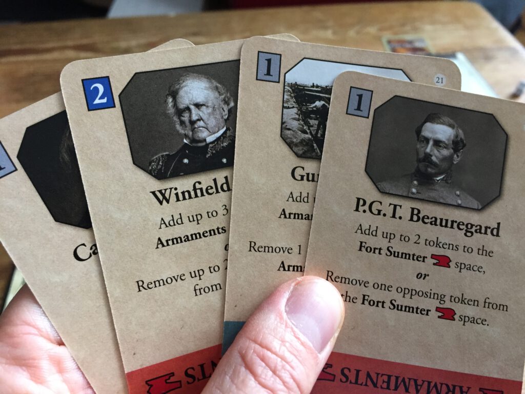 Fort Sumter is from GMT, the go-to company for involved, historically-themed games such as Cuba Libre (Cuban revolution!) Twilight Struggle (the Cold War!) or Time of Crisis (the Roman Empire!). They tend to be exhaustively researched, strategically thoughtful, and often lengthy undertakings. But whereas Fort Sumter is also inspired by history, concerning the onset of the American Civil war, this is a two-player thing you can blast out in half an hour or less.