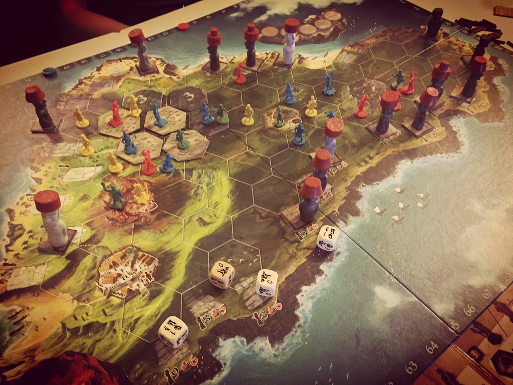 I haven’t played Giants a huge amount, but in my limited experience of four or five plays it’s a good three-player game. I imagine with 4 or 5 there are more opportunities for piggy-backing on people’s movement networks, but it does make the game longer. Giants combines individual planning and strategy with some (occasionally co-opted) tactical co-operation. A family game – for a family of strategists.