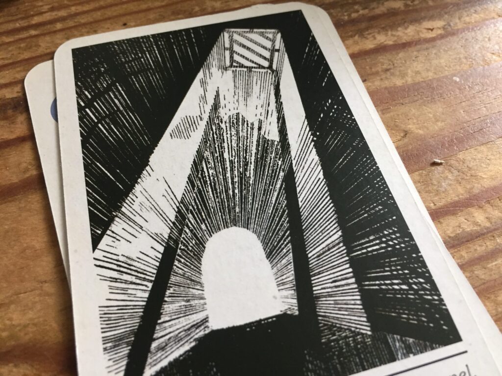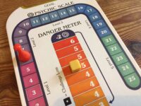 Over the course of the five chapters, each decision you make takes you to a new story card, and as your progress you’re trying to keep your Psychic level high, and your Danger level low: both relate to challenges (sometimes optional, sometimes not) you’ll face on your journey, where a die roll decides success or failure and the current danger level (or higher) is the target of the roll. Pyschic power and equipment can help you meet the challenges, but if you fail it’s ok – there’s usually a way out of trouble.