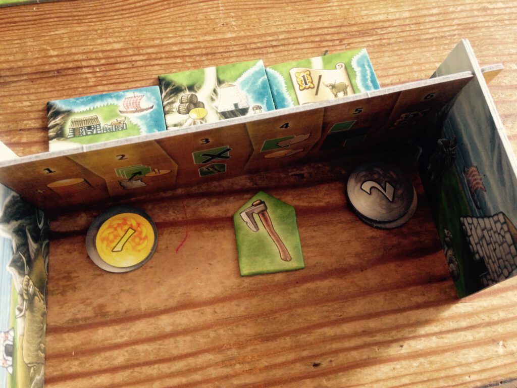 A new round begins: players get some cash income – how much, again, varies depending on what tiles you’ve placed – and the process repeats. After the sixth and final round there is an additional round of scoring where players with banners on their tiles can pick up points. The most points is declared King, and wins!