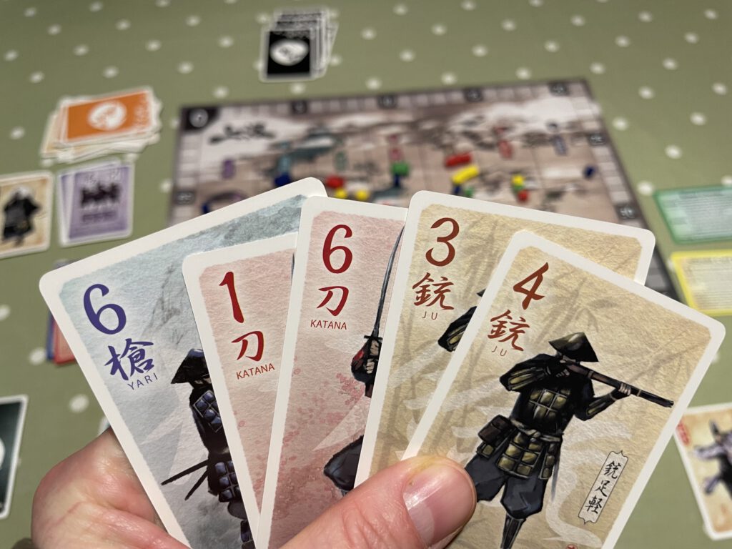 The game Joraku reminds me of is Brian Boru – another game of control and influence that is driven by a trick-taking mechanic. Whereas Brian Boru is a tricky teach and takes a couple of plays to start making sense, Joraku is much more accessible – you can learn it in twenty minutes, teach it in five and play it in less than an hour. And for all it’s comparative brevity, it’s quite a deft little game, gifting you decisions with each hand of cards that have import on the map. Every card having it’s own action sidesteps the idea that only trick-winners will get anywhere, and only ‘good hands’ – though what is a good hand in Joraku? – have value. For all the presence of a map and samurais, however, it does feel a bit abstract, like you’re fighting over a scoring system more than a country; and so it’s not really a favourite for me. But it’s good tactical fun all the same.
