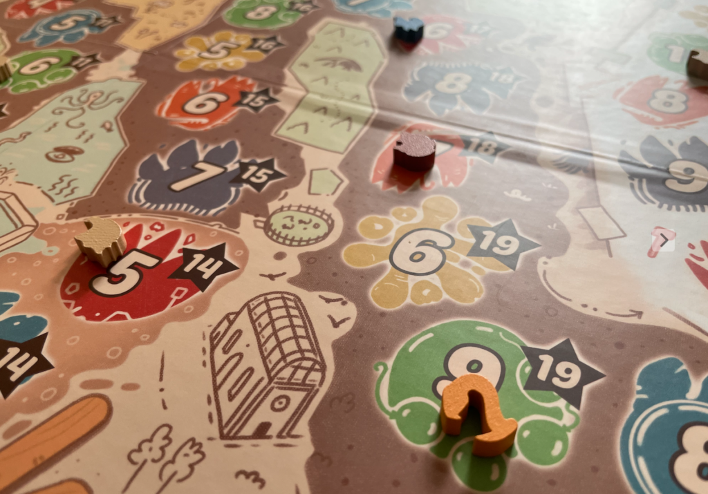 An unusual game that takes the hidden information of Perudo and turns into a co-operative venture, meaning the undertaking has a kind of low-level tension and element of detective work. It’s hard to get your head around at first because we have a track but we’re not racing, and we have cards but we don’t play them. I guess for some that slight sense of inertia might underwhelm, but I confess I enjoy Kuzooka for both its oddball curiousness and the delightful mix of risk-taking and deduction.