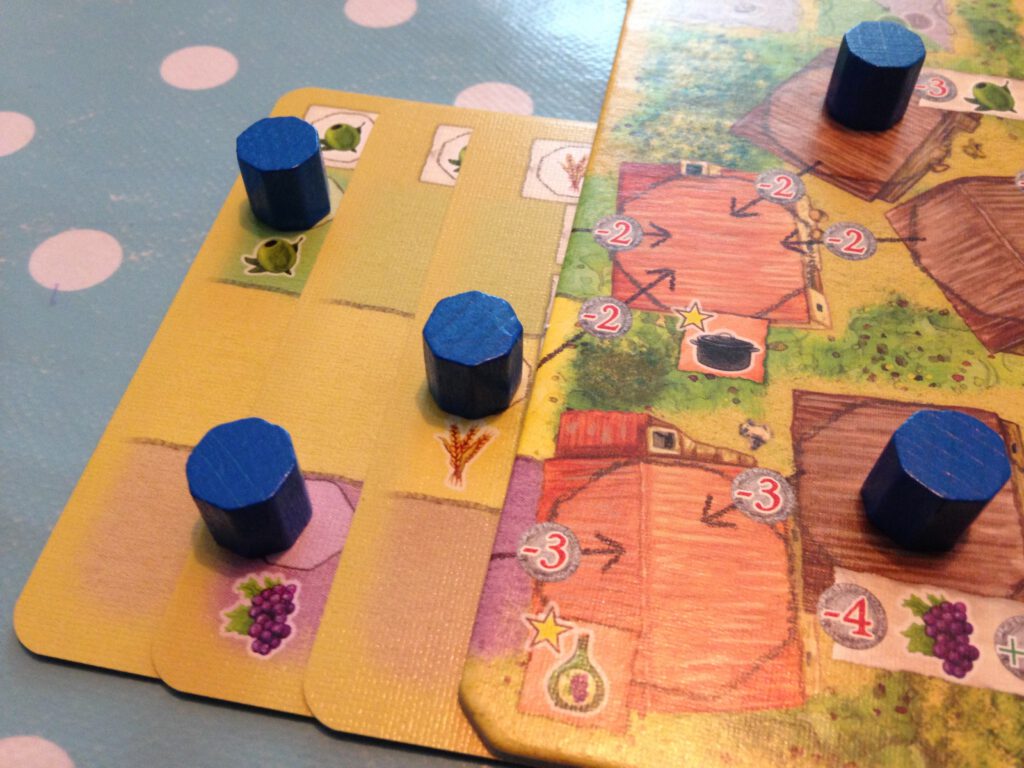 The whole thing seems exceedingly complicated on a first play – there’s 19 pages of rules – but after that initial, bewildering experience is finished, the myriad of stuff-you-can-do takes on the form of potentially-interlinking things. How will you put these cards to use in a way that combines them beneficially? It’s no good having loads of bacon if your market barrow is demanding wine and wheat, as every crestfallen farmer knows. There’s a vast amount of variation here in the cards themselves and potential strategies; and although the game is not dripping with player interaction, if you like something to get your teeth into, La Granja will reward you with lots of variability.