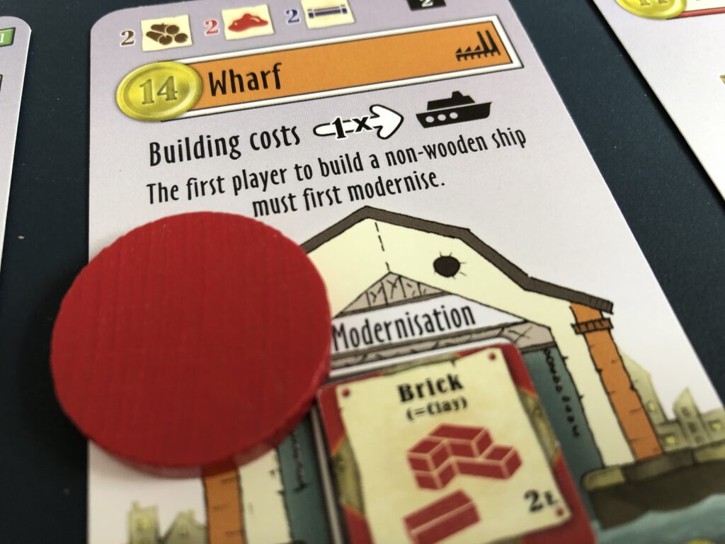 This paying for building use isn’t Le Havre’s only catch. The other is that a worker placed in a building stays there until it’s moved on, blocking the building from use by others – this can be an inadvertent irritant, but it can also be a deliberate ploy!