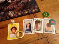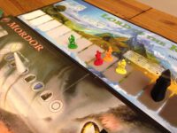 The players play cards from their hands to move themselves along the tracks, picking up shields and life tokens as they go. Getting to the end of the main track on the board resolves that episode, representing their geographical progress, and they move on to the next one. But don’t ignore the other tracks as players have to balance the need of getting through the particular part of their journey with collecting the life tokens they each need from each scenario – a heart, a ring, and a sun. They can help themselves by judicious card-play; and the ring-bearer can pull a fast one by slipping the ring on once per round and sneaking up a track without being ‘seen’ by various enemies. Additionally, each hobbit has a particular strength that players can call on, and collected shields can be traded in to call on help from the wizard Gandalf – but only a certain number of times in the game.
