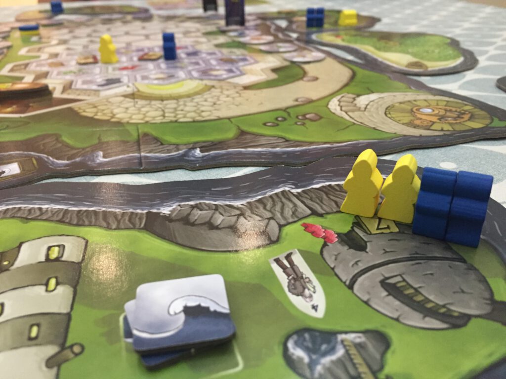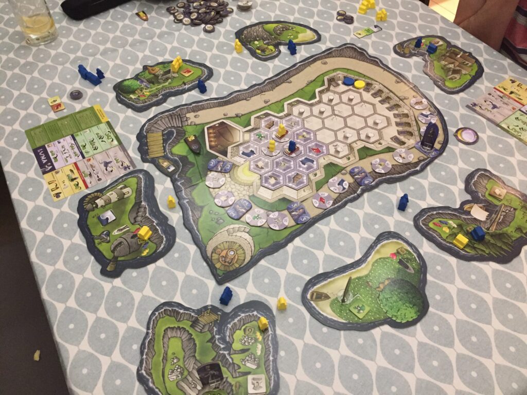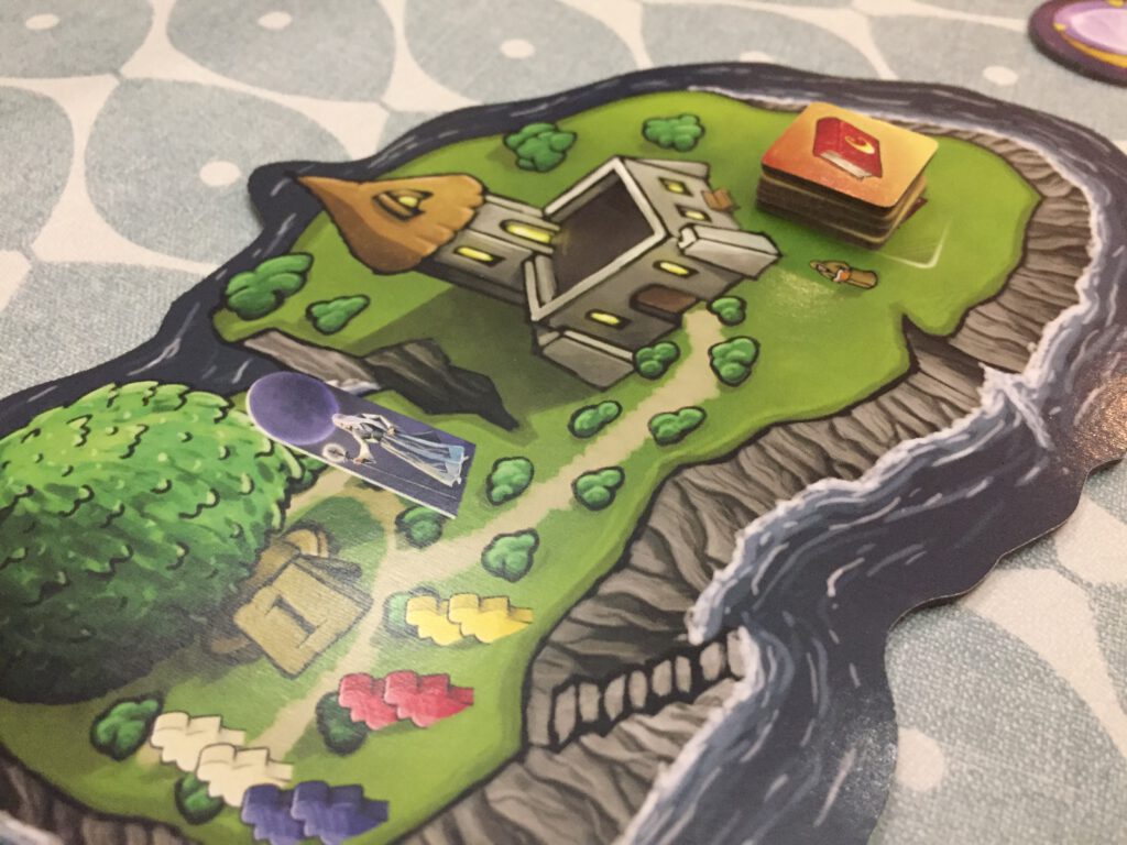 The board is a series of islands, each of which can be visited by novices to complete certain actions: smaller ones allow you to gather actions for subsequent play, and your main objective is to populate the biggest island of all – the temple – with your novices, to sway the victory your way.