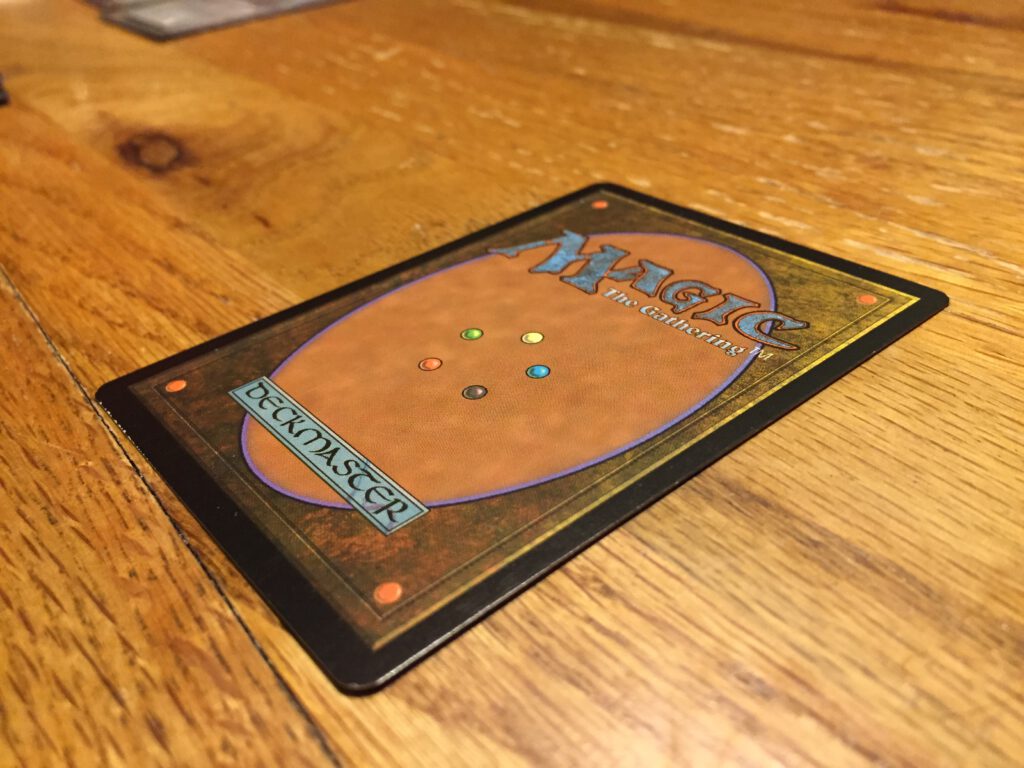 The game itself is a head to head battle between two wizards, with the cards representing the spells they cast. Each player plays with a deck of cards that they cycle through, dealing themselves a hand and then choosing how to play it. Some cards are the spell itself (or the creature the spell conjures up) whereas others are Mana: these function as a kind of battery, to power the more exciting spell cards. Mana played from your hand to the table can be tapped (indicated by rotating onto its side) to power a spell – once tapped, it’s unavailable until your next turn. The juicier cards are meanwhile doing damage to your opponent – some have an effect they vanish into your discard pile, but others sit out on the table as a thorn in the side, giving your opponent something to deal with. Each of you begins the game with a certain amount of health, and when one of you hits zero, they lose the game and the other is triumphant.