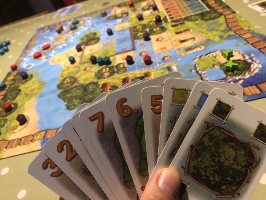 Mangrovia is a race of sorts – although there’s no finish line, the game will end when someone has built all of their huts and although that’s no guarantee of a win, it doesn’t hurt. Within these parameters are a series of mini-races – to grab the best spots on the board…