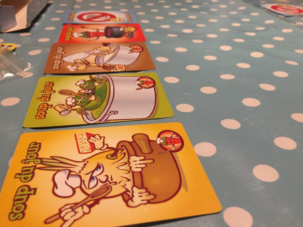 Be aware also that recipe cards do not come back to you: once you’ve cooked pea soup, you can’t do it again! So as the five rounds progress, you have dwindling choices as to what you can cook – and in the fifth round, no choice at all! After the fifth and final round, the player with the most points is the winner.
