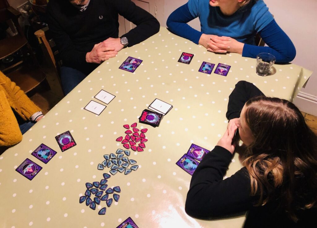 A really simple idea that produces moments of joy speckled with many pauses for befuddlement. We really like the concept of Medium and have enjoyed a number of plays. The caveat is how long you wait between turns, especially with more players. It gets a little convoluted and considering it has ‘Party Game’ written on the box, it feels weirdly staccato: interesting, curious, but somehow lacking rhythm. It has the clever word association of our perennial favourite Just One, but without quite reaching the same levels of joy and comedy. But that said, there is something unique about Medium, and you can house-rule the crystal ball cards to make them multi-use (we rotate them twice before flipping over on the third use) to give each non-active player a bit more involvement .