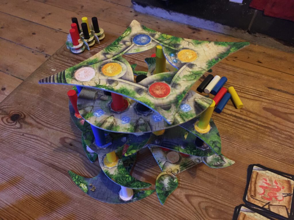 We've played this a lot. It can feel harsh when the temple collapses, but then it's so easy to set up and go again - the temple shapes are a real mixed bag and you end up with some crazy shaped constructions.
