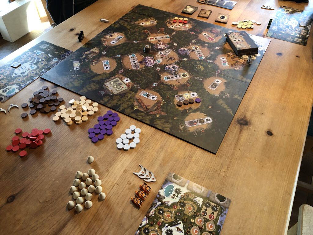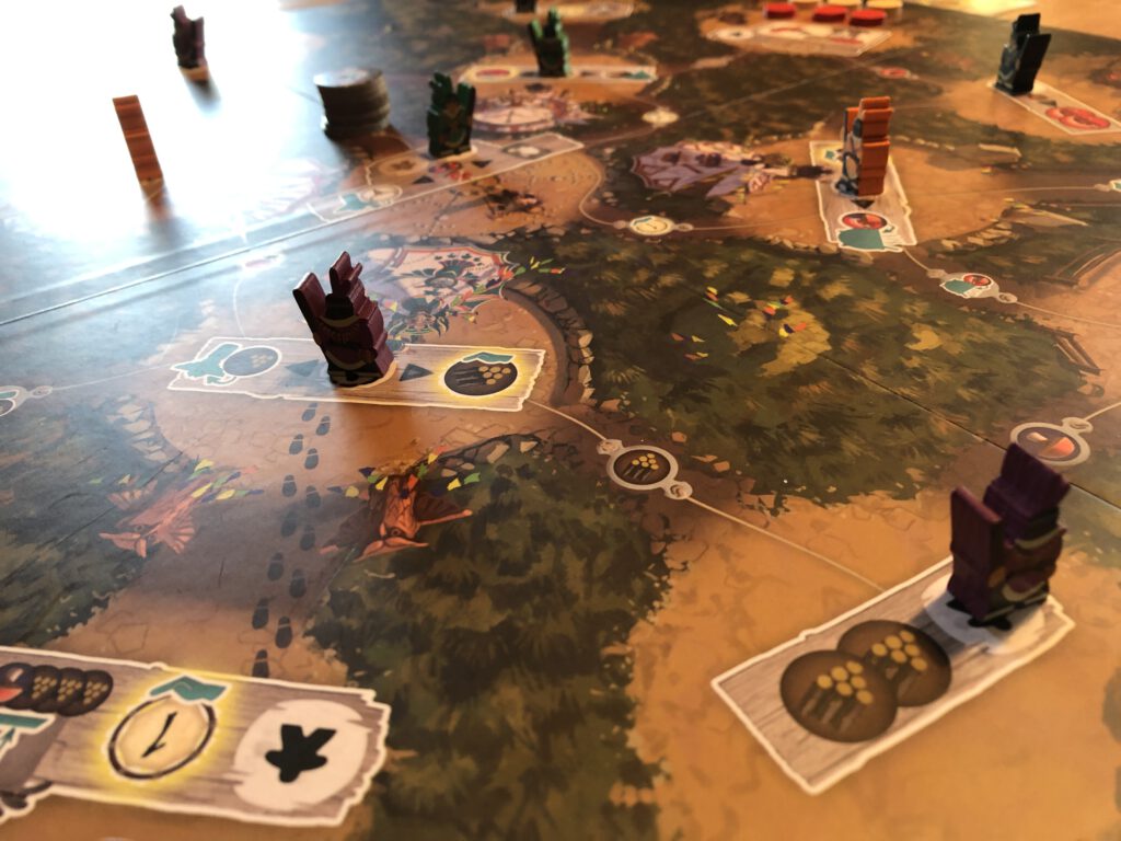 The rules are actually not excessive at all - each spot does a particular thing and once you're familiar with the iconography, it's an easy enough game to understand what everything does. But the challenge is in making the cogs connect, and spinning them in the most productive way. It's more than possible to get something wrong and be taking a tribesperson off the board with nothing to show for it!