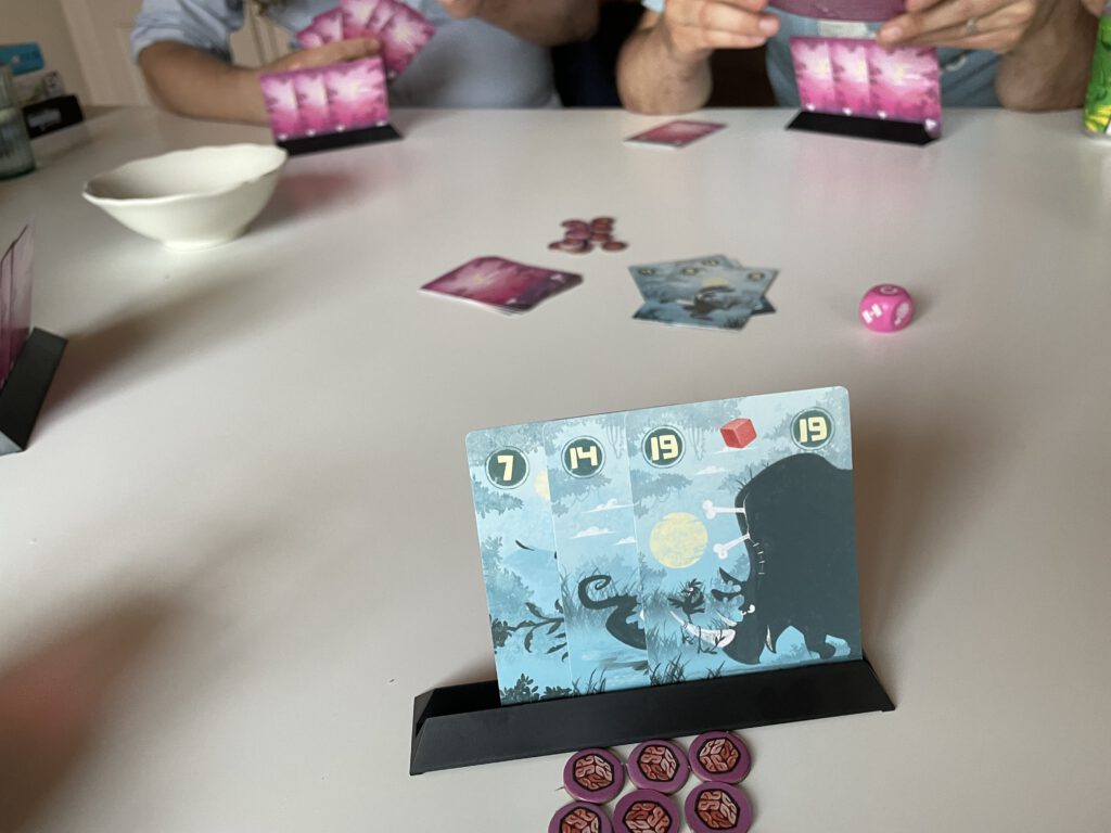 Oh My Brain is decent fun, but from a game design perspective it seemed to us slightly overcooked. The cemeteries providing a kind of secondary card component is interesting; a sort of semi-ticking clock that allows for player to player sabotage. But the die-rolling felt bolted-on and arbitrary enough that at times it seemed the game was happening to you, as an invested but underpowered spectator. It’s not a bad game, and I wouldn’t veto playing it, but I don’t think it’s destined to be a favourite.