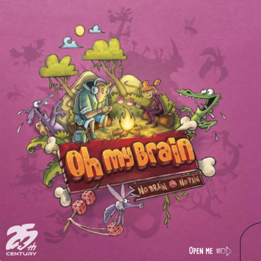 Oh My Brain is a zombie-themed card game, where players are trying to survive an undead attack by deflecting the zombies onto your fellow combatants. Everyone starts with nine brain tokens, and as soon as any player loses their last one the game ends, and the player/s with the most remaining brain tokens win.