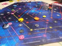 A game probably best with four, it’s also at its most chaotic with four as well – but it’s the kind of game for players who enjoy the madcap chicanery at play here. Undoubtedly someone will move the planet you’re just about to jump on. Undoubtedly you’ll have the odd fallow turn where it feels like you’re in a vacuum – but the game moves along so fast that you can forgive it the occasional hampering of progress. The rules are simple but, despite the theme of a race, the vibe is combative enough that the thin-skinned need not be reaching for their spacesuit.