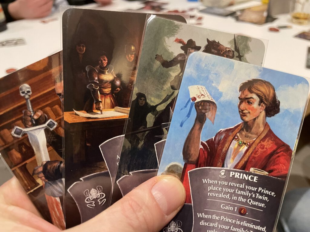 Stupid good fun of the highly interactive type which I always enjoy. For my personal tastes it veers slightly too far into chaos over agency, but Oriflamme balances that with speedy-play and breezy play-time, and is brimming over with a delightful nastiness that – as long as no-one gets too mean off the table – I tend to enjoy. However, it’s best with a crowd (4 or 5) rather than two or three advertised: if you’re going to play Oriflamme, you may as well embrace the bunfight…