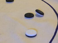 It’s tricky! And the game can be very swingy, with one player going from a strong position to a weak one in short order. The game ends either when either player has no more magnets to place, or the red magnet is accidentally moved from its’ central position.