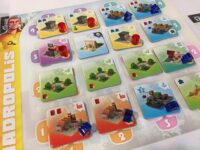 When you take a tile many of them trigger rewards in the form of energy or residents, and at the end of the game these can be used to activate your buildings. Activated buildings score points in various different ways, depending on the building: parks can offset the pollution generated by factories, houses can be a home for residents and so on. Remember too that your home town is divided into four districts, and having a public services building in each of them scores points. Finally there are monuments that can score you points based on what they’re adjacent to. Most points: wins!