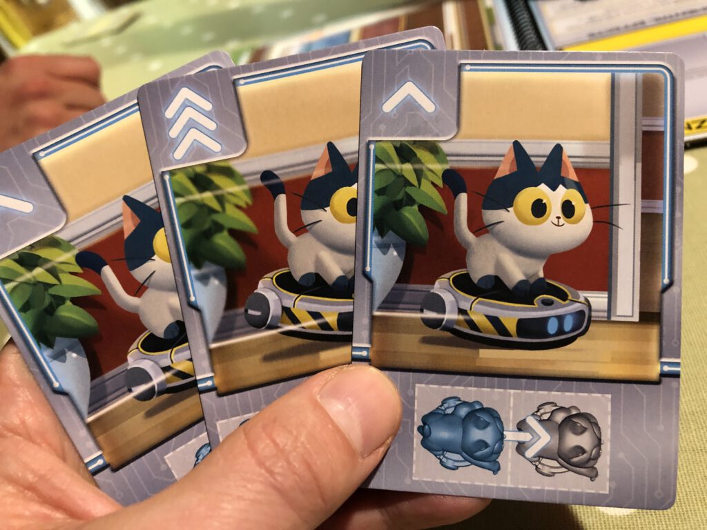 From that simple beginning, Quirky Circuits introduces more nuance in further games: cards that must be played before all others in your hand, breakable vases on the board that can be broken as long as they are cleaned up, chair legs to get tangled in and so on. Once you’re done with the carpet cleaner, there are other robots to explore too, each with their own idiosyncrasies and bespoke scenarios to navigate!