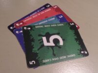 Red7 is a game I admire rather than hugely enjoy – it’s a clever conceit, but when the constant changing of rules is the games’ actual mechanic, I find the game doesn’t flow, but shudders erratically forward as everyone repeatedly stops to compare cards played and then peruse their cards for decreasing options. – But that’s just me, and I know some people who love it for its cunning interplay and canny switches of direction.