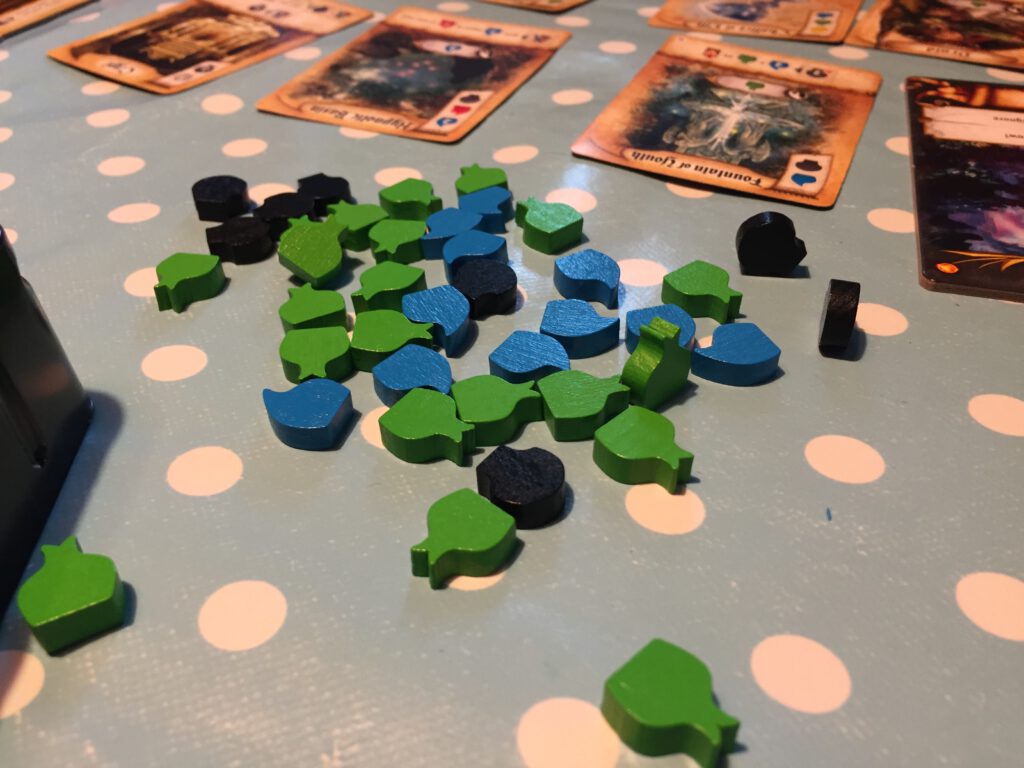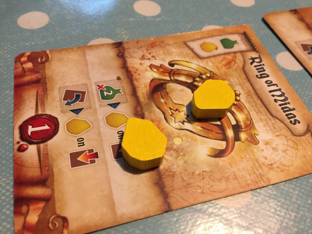 When you’ve no more actions to take you pass – returning your magic item to the centre of the table and taking another in its place. You also draw another card!