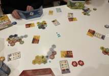 Before we forget, there’s another way to score points which is the collection of gems. Players begin with four gems in their supply and you always add a gem to your smallest group of tiles when you’re splitting them. You may get the gem back, of course, depending on what your neighbour takes from you, and the more gems you have, the more they score. Other than that, the game continues for four rounds and after the fourth round all areas are scored, plus gems, and the player with the most points is the winner.