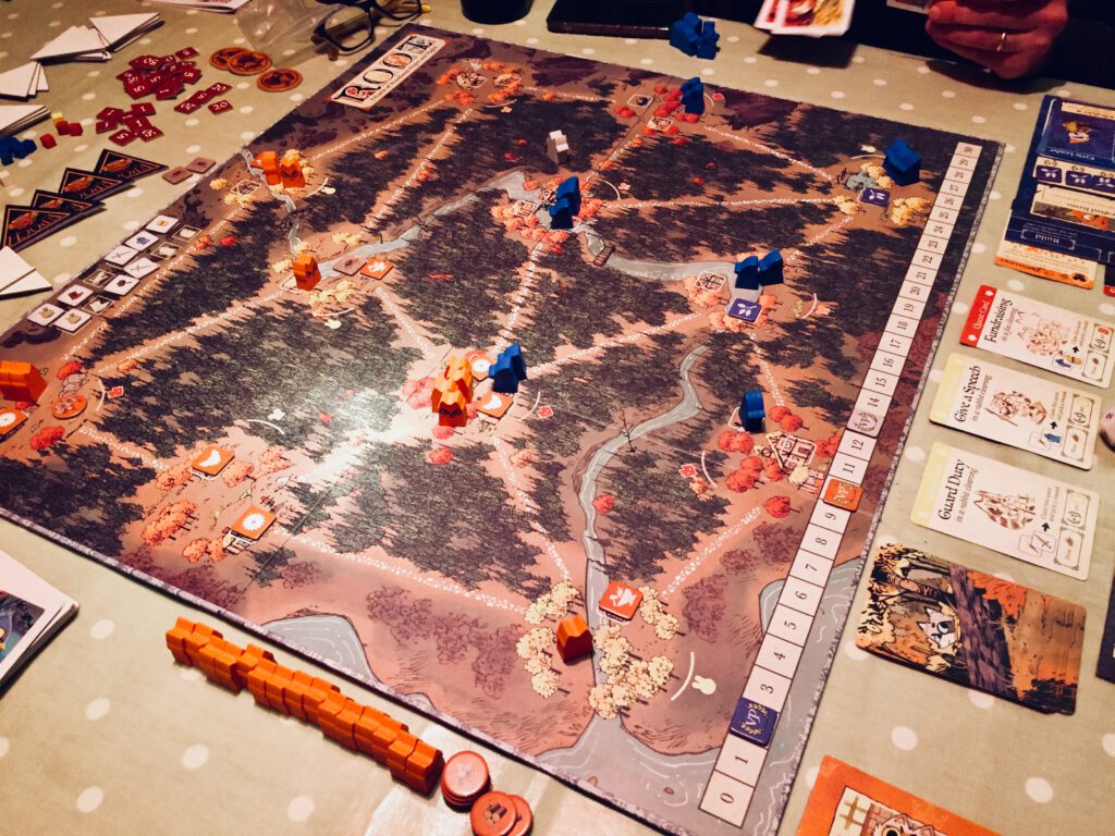 In Root: A Game of Might and Right players take control of one or four competing factions and fight for (or against) dominance of the woods. You can be the Marquise de Cat, currently in control; the deposed Eyrie, seeking to regain it; the trampled-underfoot Woodland Alliance, looking to undermine both via uprisings, or the solitary Vagabond, who slips in and out of the trees, picking off points like a born survivor.