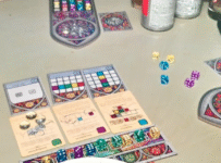 It’s rather sweet, Sagrada – almost more of a puzzle than a game, as interaction is so minimal between players. If you like a puzzle this is a very pretty one, but I’d caveat that by keeping it to three players maximum: the longer the game gets, the less compelling it feels to be desperately wanting a particular number in a particular colour. For two it’s breezy enough, but for what Sagrada offers, once it goes past the half-hour mark the thrill of choosing dice begins to fade. If you prefer something with more interaction then we’d recommend Azul.