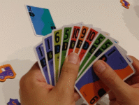 Scout is a simple [simple_tooltip content=’each card or cards played must be stronger than the previous play’]climbing[/simple_tooltip] game with one rather large catch: you can only play cards that sit adjacent in your hand as it was dealt, and you cannot move the cards around. The one thing you can do before play starts is flip your entire hand the other way up: each card has a different number, depending on its orientation.