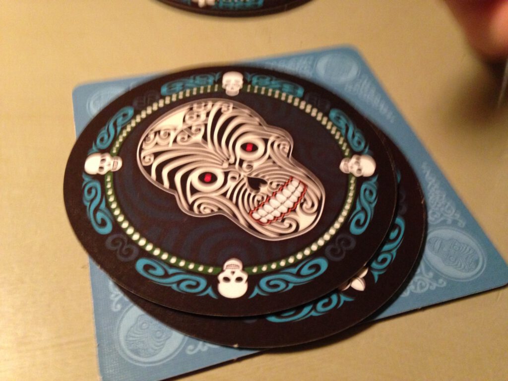 If they encounter a skull, they lose the round and also lose one of their round mats – potentially their skull.