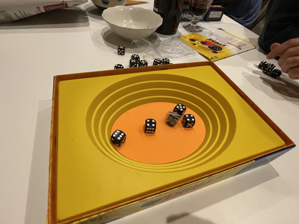 Strike is an extremely simple dice-chucking game that takes about five minutes – or less!