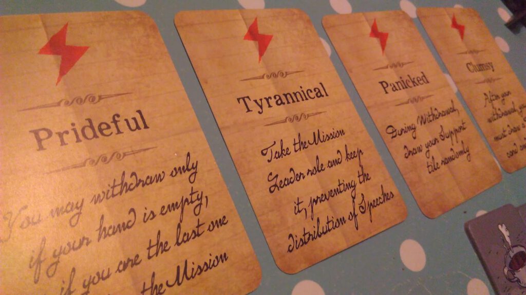 If however all players have passed, the mission is considered a success. Any leftover cards still mean cards moving over from the morale deck, but at least there shouldn’t be too many of them. The mission leader changes and the new mission leader chooses how many cards to deal to everyone; 1, 2 or 3. More is better for getting through the trials deck, but less is better for getting through the mission and minimising the effect on morale!